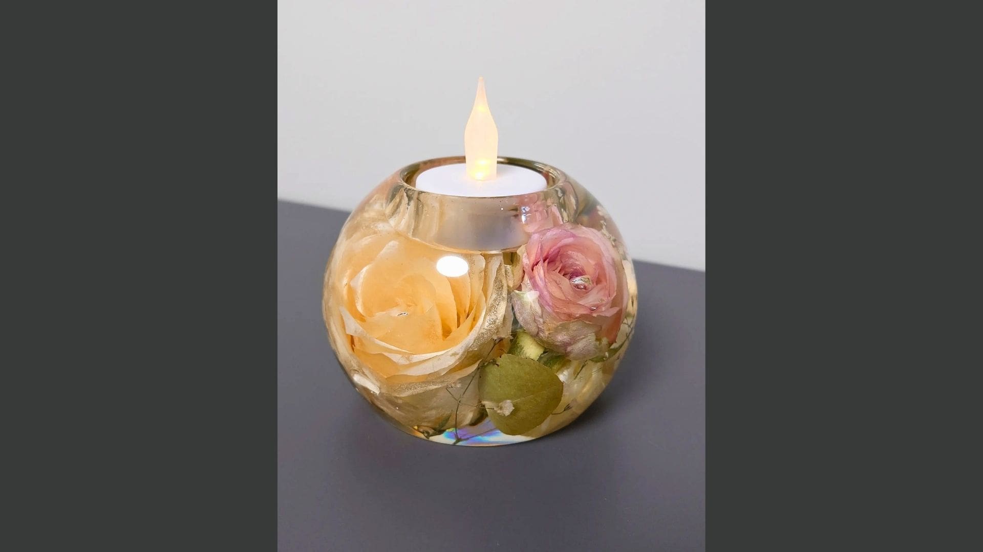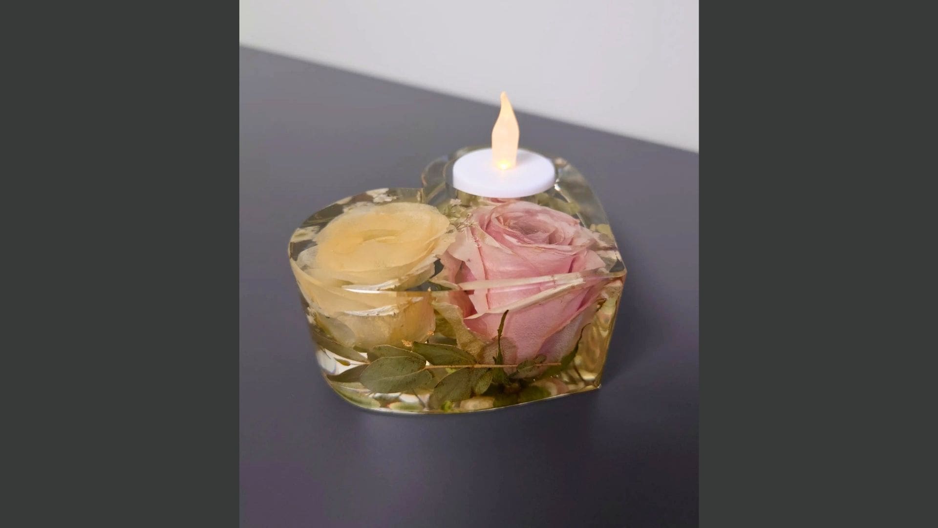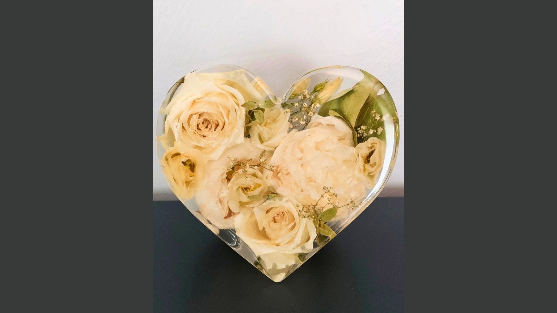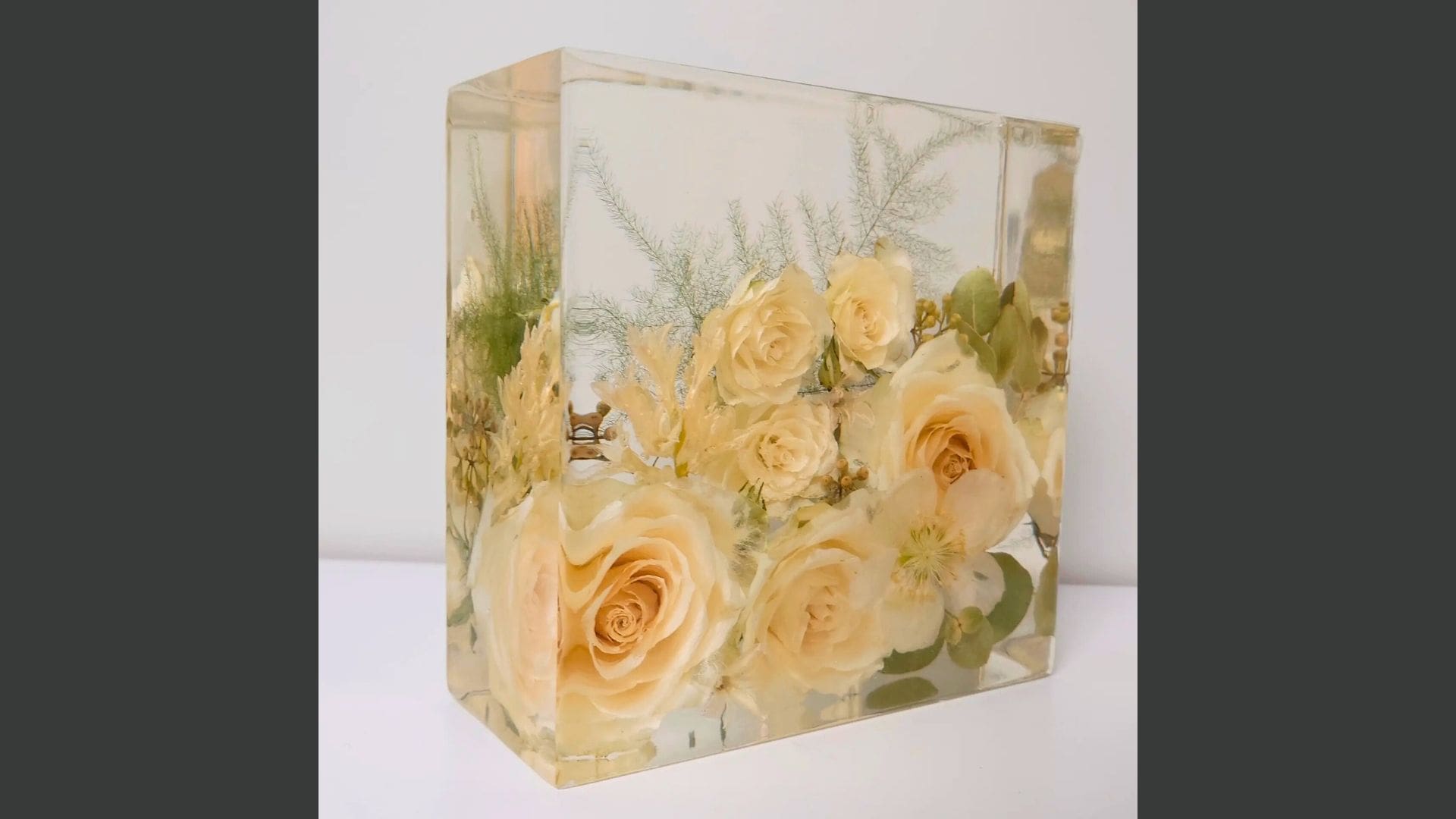 • Kunstobjekter med ekte bryllupsblomster støpt i epoxy